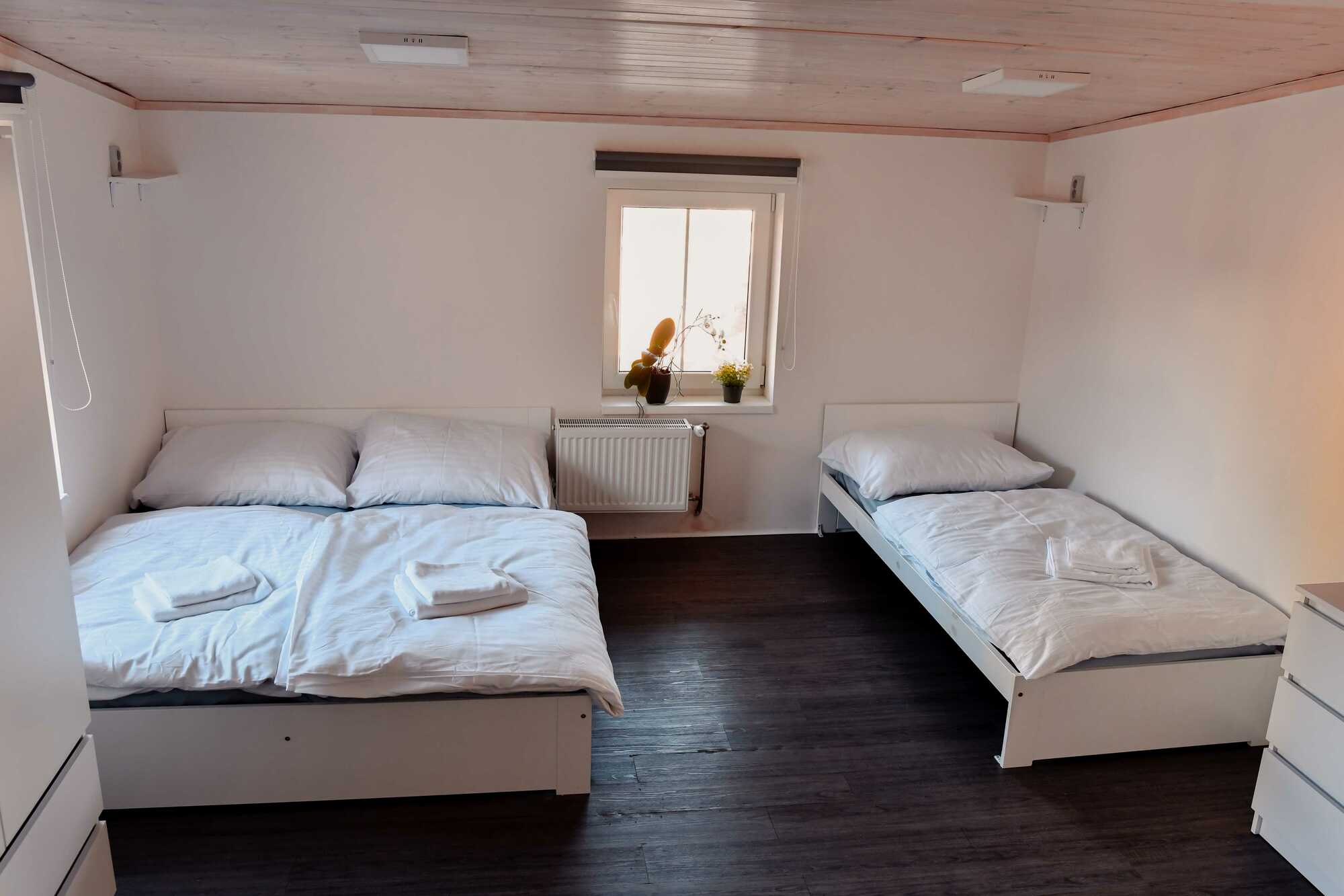 - Typy postelí: 1x Manželská postel, 1x Samostatná postel
